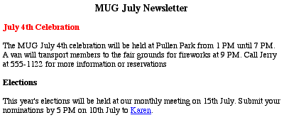 <p>The MUG July 4th celebration will be held at Pullen Park