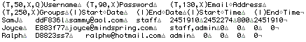 - (T,50,X,Q)Username (T,90,X)Password (T,130,X)Email Address