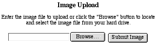 View the file upload form in a web browser. Enter the file name to upload or use the "browse" button to locate and select the file on your hard drive. Click the "Submit Image" button.