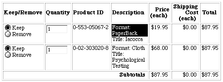are added to a product's brief description in a database-driven shopping